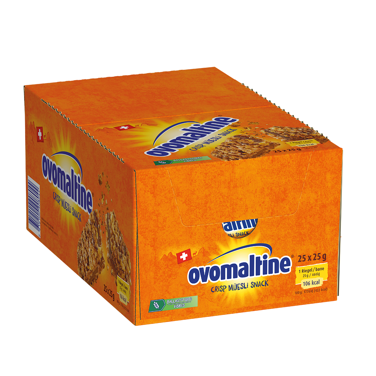 Der Ovomaltine Crips Müesli Snack kombiniert vier hochwertige Getreidesorten mit einer cremig, schokoladigen Füllung.Der Crisp Müesli Snack ist perfekt für jedes Ereignis und lässt Ihre Abenteuer unvergesslich werden.