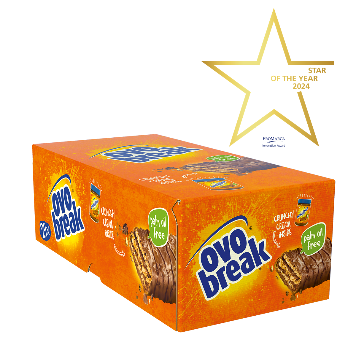 Vorhang auf für Ovo Break! Die Mischung von Crunchy Cream und knackiger Waffel sorgt für ein unvergessliches Crunch-Gefühl mit jedem Happen. Ob als zuckersüsse Nascherei, verführerisches Dessert oder Energie-Booster – Ovo Break ist ein wahrere Gauemnschmaus. Also, am besten sicher verwahren! Teilen? Wieso, wenn man diesen Leckerbissen ganz allein geniessen kann? ;)