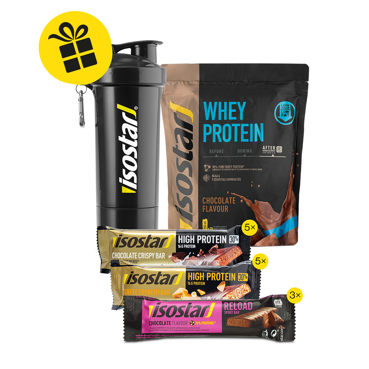 Isostar Crossfit Starter Set: le pack récupération optimal pour votre organisme après un entraînement intense. En plus, les protéines contribuent au développement et au maintien de la masse musculaire. Vous trouverez la liste des ingrédients, valeurs nutritionnelles et allergènes sur chaque produit.