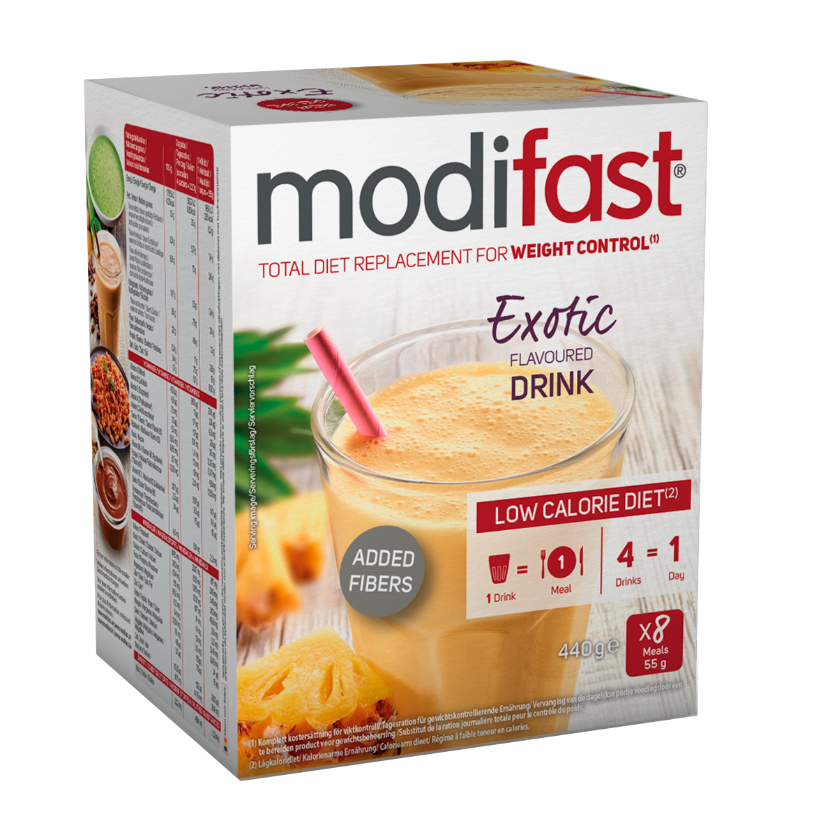 Le drink Modifast Exotic rafraîchissante au yaourt et à l'ananas convainc particulièrement par son goût exotique et est particulièrement légère grâce à l'arôme de yaourt. Idéale pour contrôler son poids en toute simplicité.