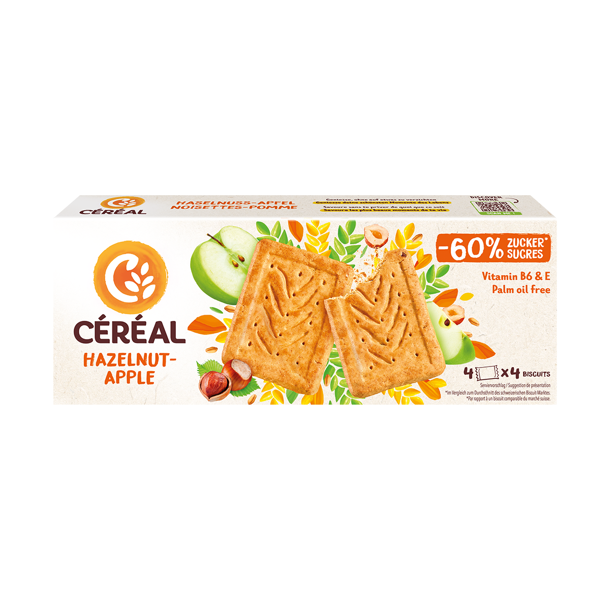 Envie de grignoter ? Les biscuits Céréal Noisette-Pomme sont l’encas parfait pour les petites faims, car ils sont enrichis en vitamines et contiennent peu de sucre. Céréal – toujours une bonne idée.